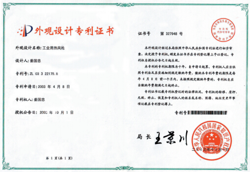 本廠 始建于1994年, 擁有塑膠件注塑生產加工、發(fā)熱芯生產線、成品裝配線,是從事電熱工具:熱風槍、熱熔膠槍、塑膠焊槍等電器產品開發(fā)、生產的專業廠家,擁有二十多年的生產經驗,其中工業用的調溫、恒溫、數字顯示、數字控制溫度的熱風槍、熱熔膠槍已處于國際地位,并獲得多項專利。2000年榮獲《質量監(jiān)督檢測中心合格產品》,2002年經德國CE認證中心認證,榮獲CE證書。2003年榮 獲國家輕工部頒發(fā)的《中國名優(yōu)產品》證書,并...